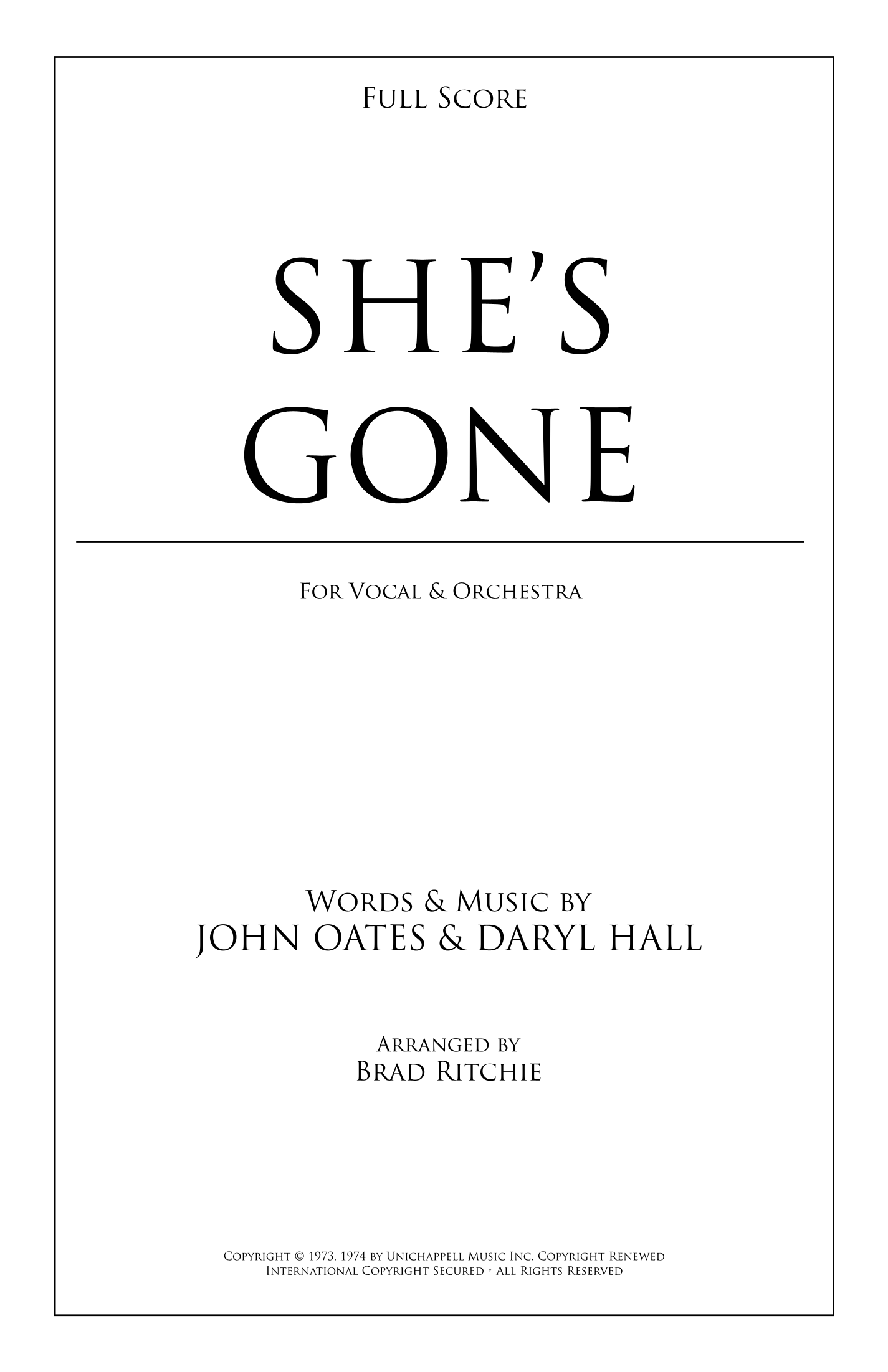 She's Gone (arr. Brad Ritchie) by Hall & Oates Sheet Music for Full Orchestra at Sheet Music Direct