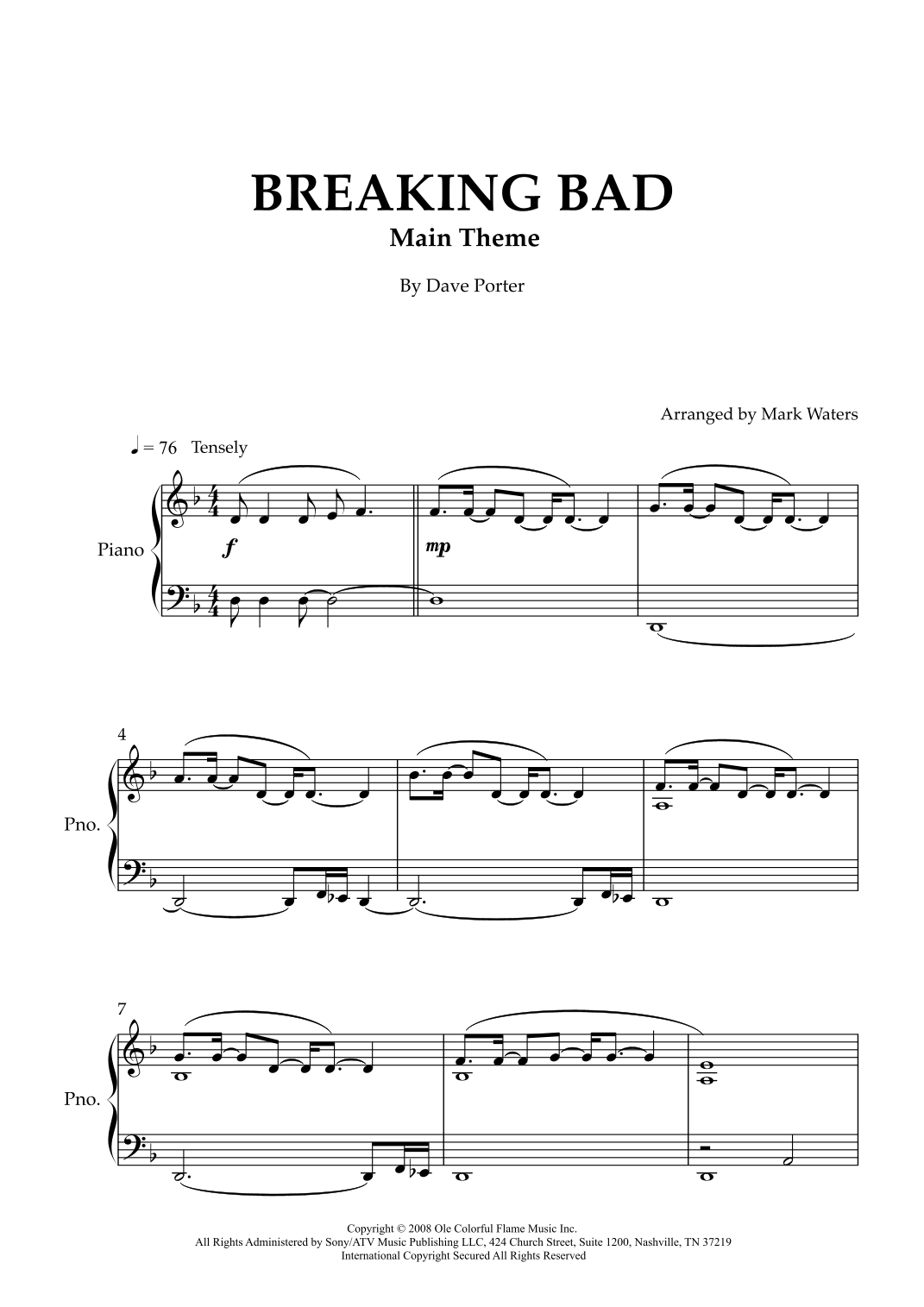 Breaking Bad Main Theme (arr. Mark Waters) by Dave Porter Sheet Music for Piano Solo at Sheet Music Direct