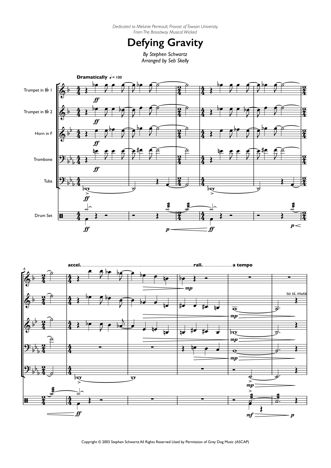 Defying Gravity (arr. Seb Skelly) by Stephen Schwartz Sheet Music for Brass Ensemble at Sheet Music Direct
