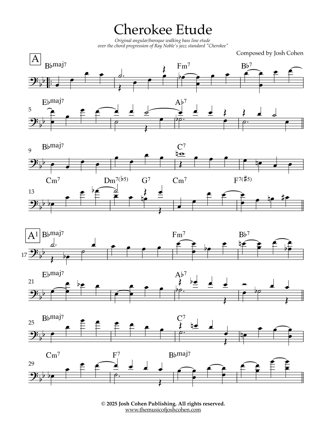 Cherokee Etude - Angular/Baroque Walking Bass Line Etude by Josh Cohen Sheet Music for Educational Exercises at Sheet Music Direct