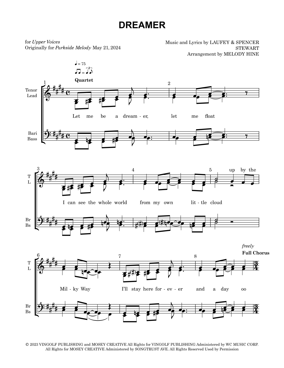 Purchase of Dreamer (arr. Melody Hine) includes: