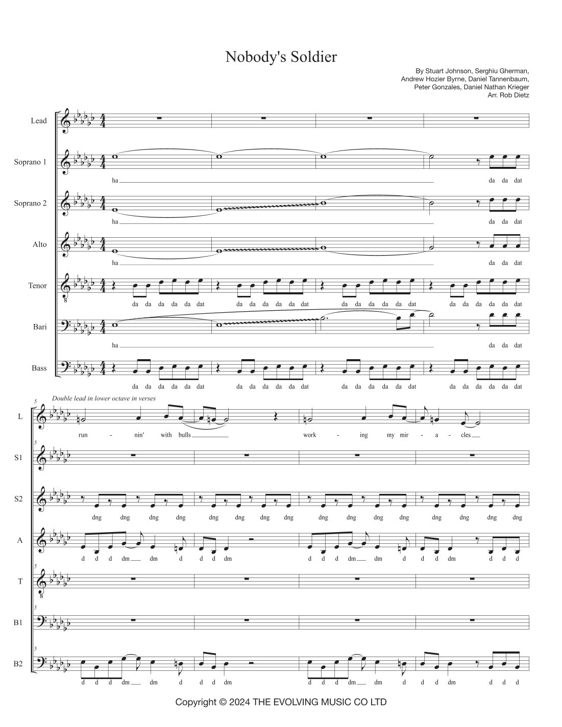 Purchase of Nobody's Soldier (arr. Rob Dietz) includes: