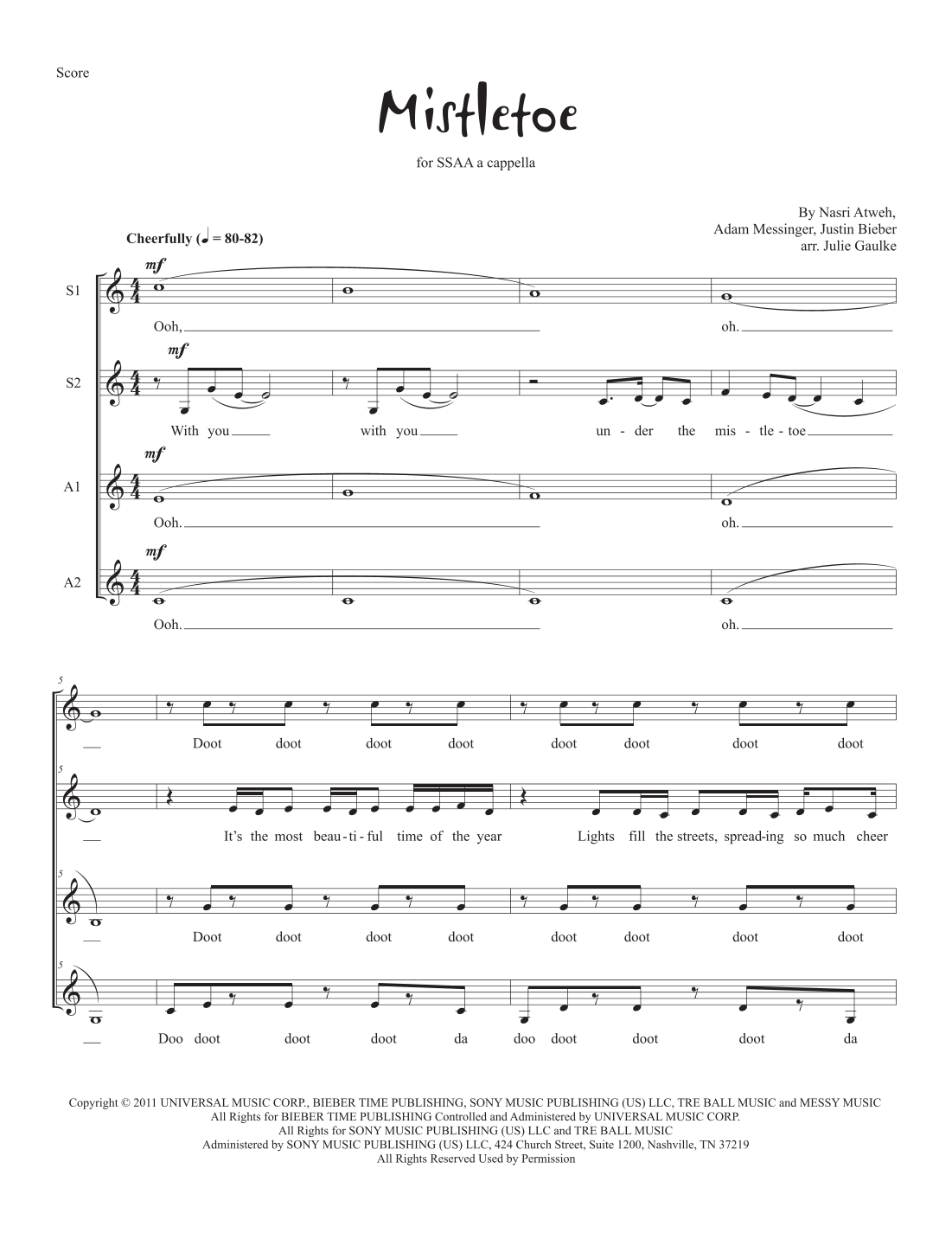 Mistletoe (arr. Julie Gaulke) by Justin Bieber Sheet Music for SSAA Choir at Sheet Music Direct