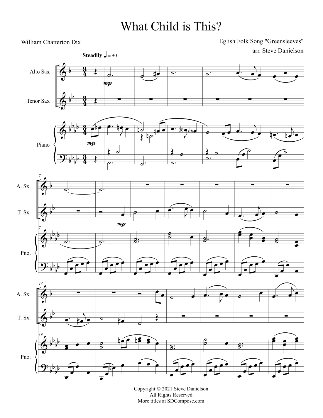 What Child is This? (arr. Steve Danielson) by English Folk Song Sheet Music for Saxophone Duet at Sheet Music Direct