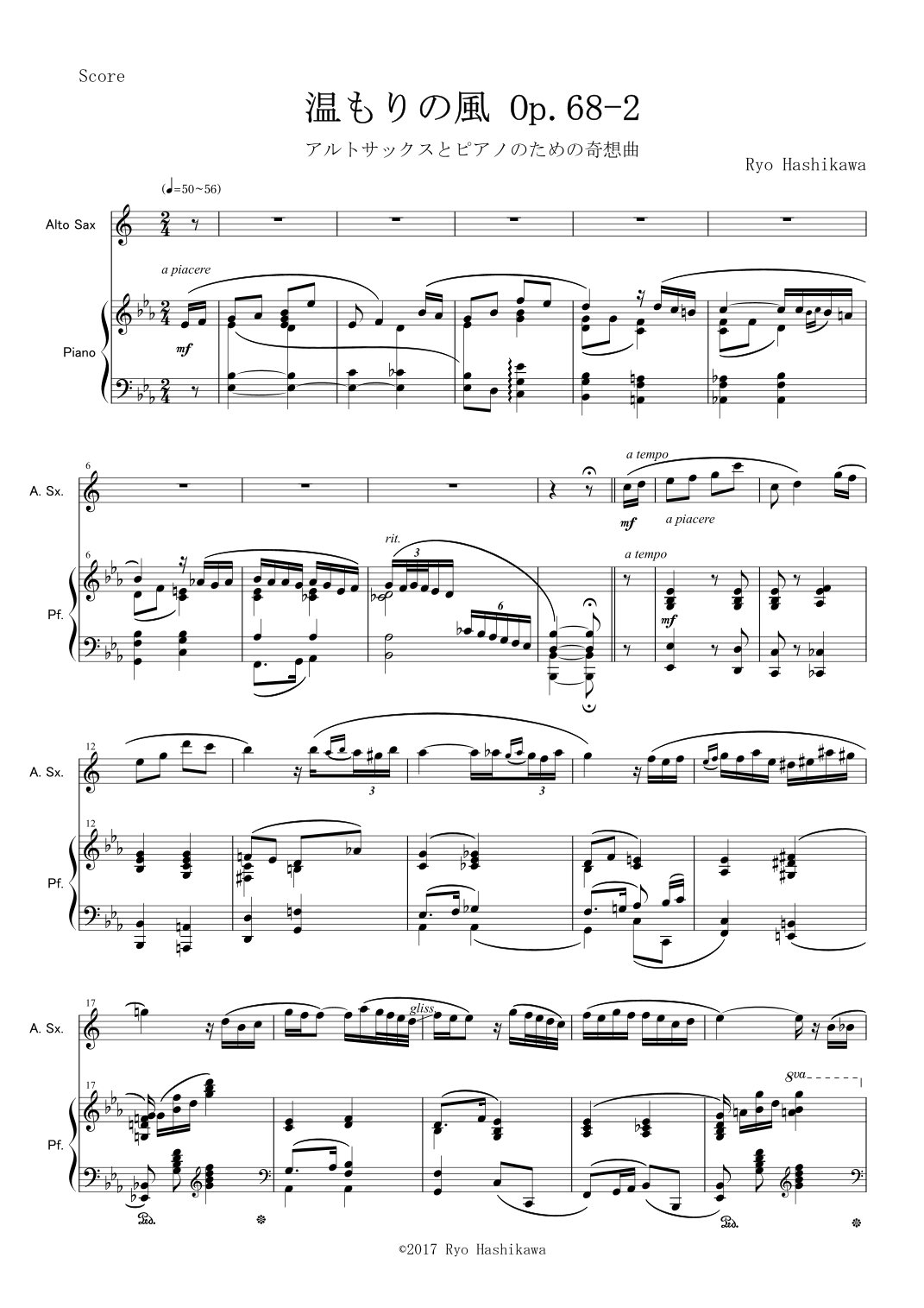 Caprice for Alto Saxophone and Piano "Nukumori-no- Kaze" by Ryo Hashikawa Sheet Music for Alto Sax and Piano at Sheet Music Direct