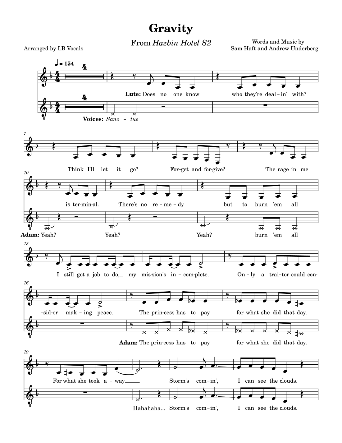 Hazbin Hotel S2- Gravity: Vocal Lines by Andrew Underberg Sheet Music for Vocal Duet at Sheet Music Direct