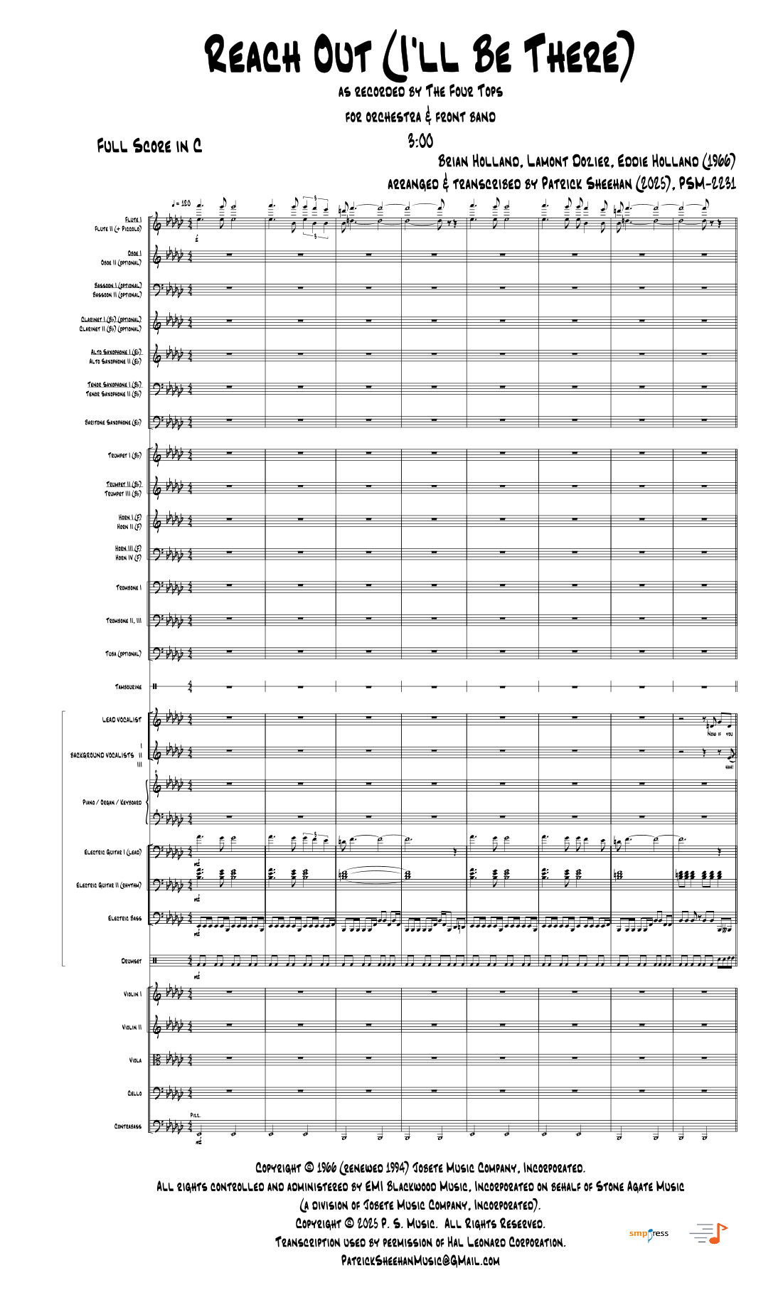 Transcribed as recorded by The Four Tops and arranged for front band & orchestra.