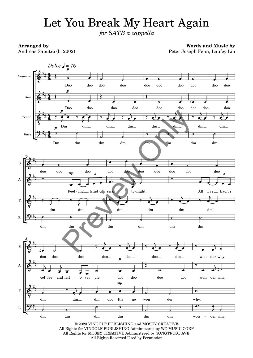 Let You Break My Heart Again (arr. Andreas Saputro) by Peter Joseph Fenn Sheet Music for SATB Choir at Sheet Music Direct