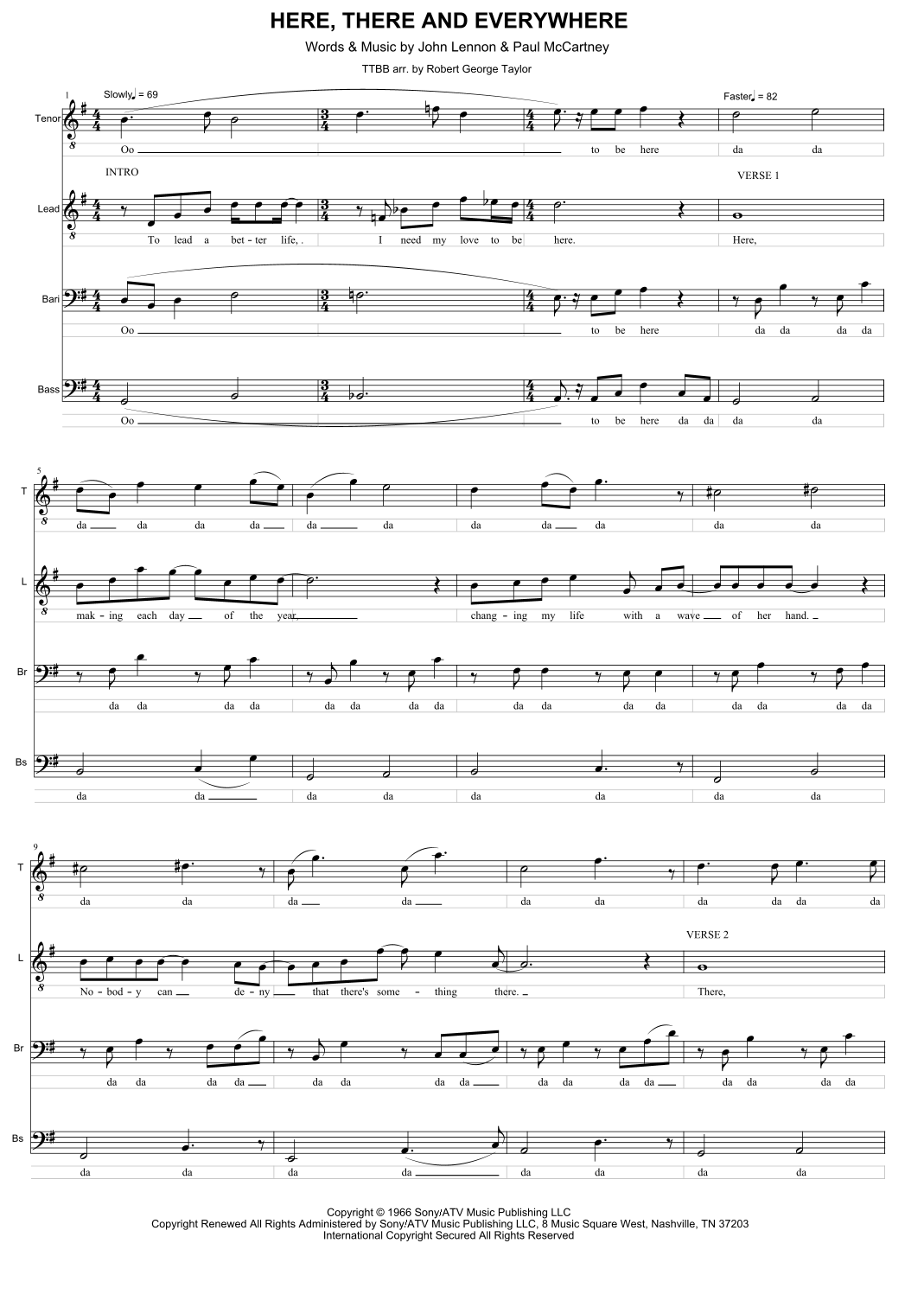 Here, There And Everywhere (arr. Robert George Taylor) by The Beatles Sheet Music for TTBB Choir at Sheet Music Direct