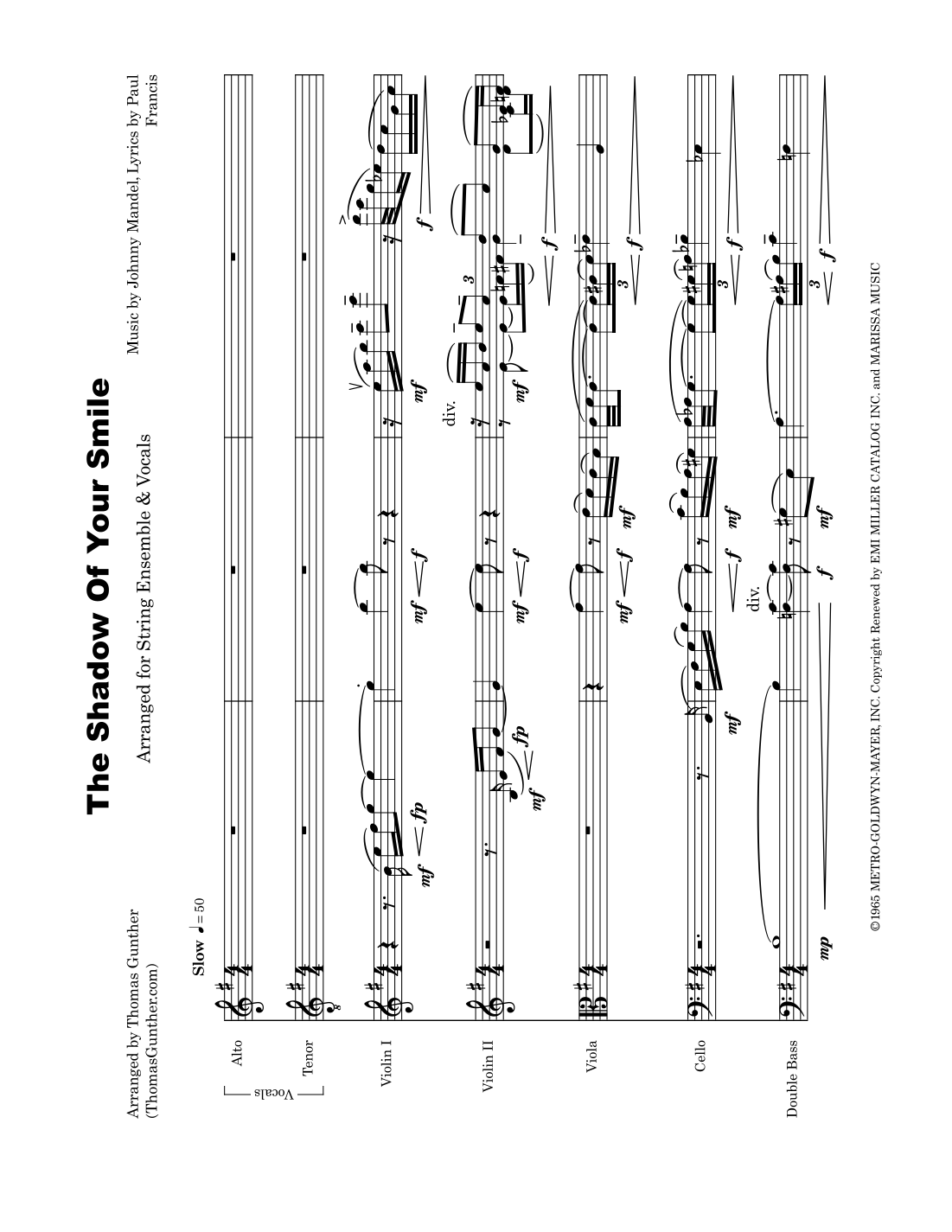 The Shadow Of Your Smile (arr. Thomas Gunther) by Johnny Mandel Sheet Music for String Ensemble at Sheet Music Direct