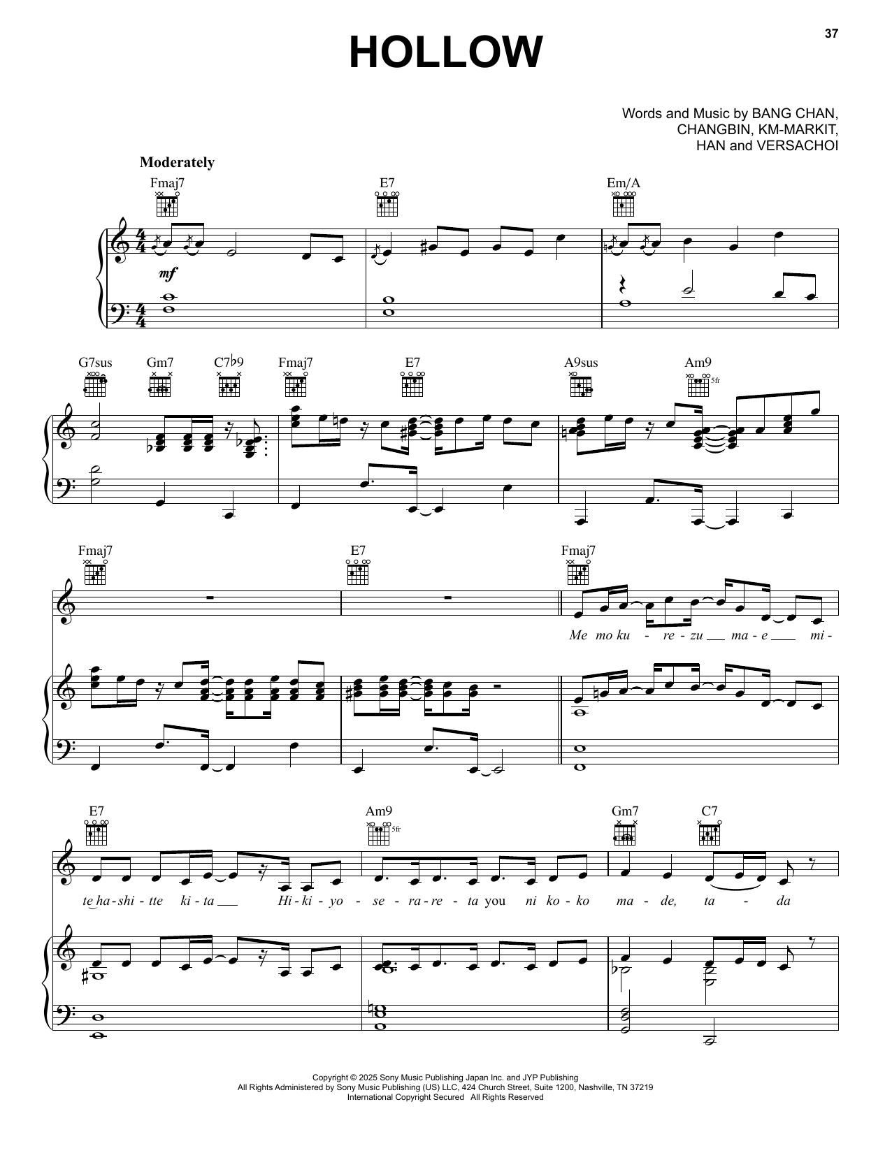 Interactive Digital Sheet Music preview of 'Hollow' by Stray Kids, Piano, Vocal & Guitar Chords (Right-Hand Melody) page 1