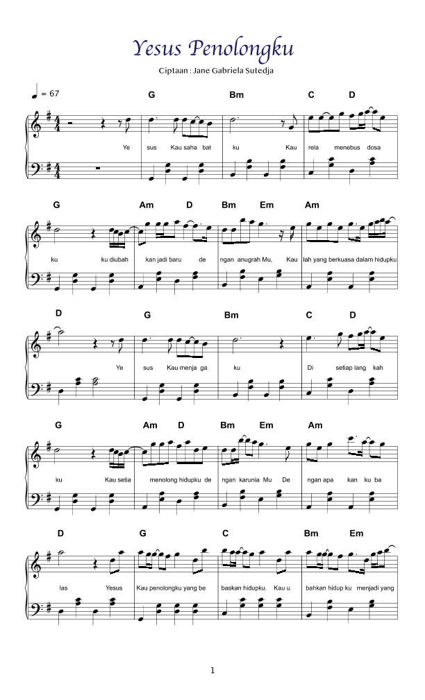 Yesus Penolongku (arr. Raymond) by Jane Gabriela sutedja Sheet Music for Easy Piano at Sheet Music Direct