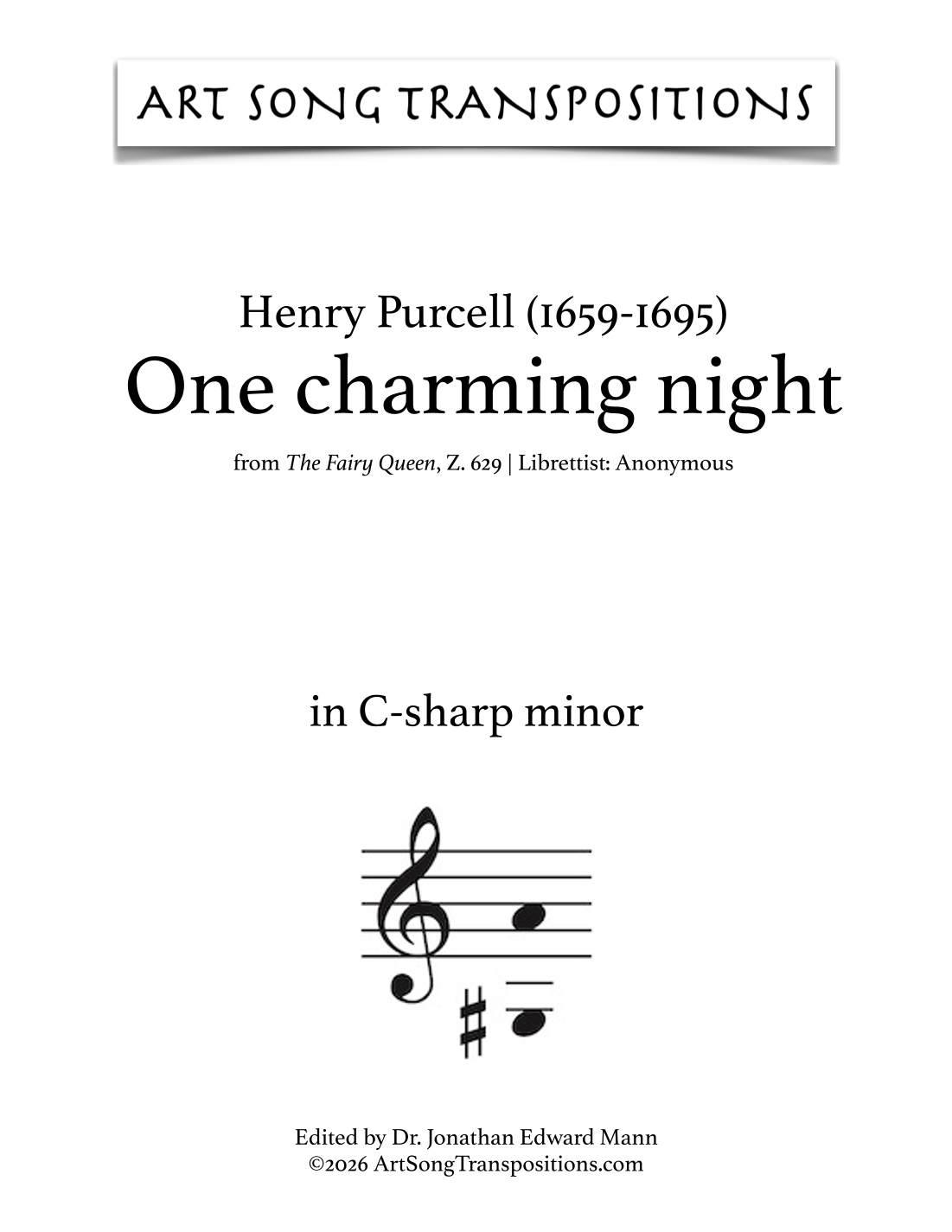 Cover Art for "PURCELL: One charming night (transposed to C-sharp minor) (arr. ArtSongTranspositions.com)" by Henry Purcell PASS