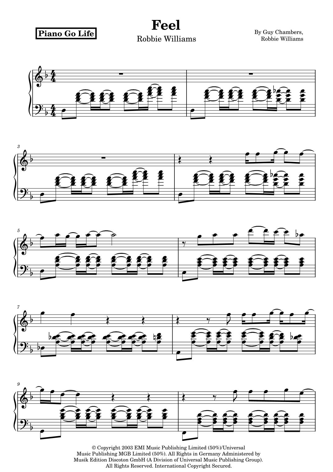Feel (arr. Piano Go Life) by Guy Chambers Sheet Music for Piano Solo at Sheet Music Direct